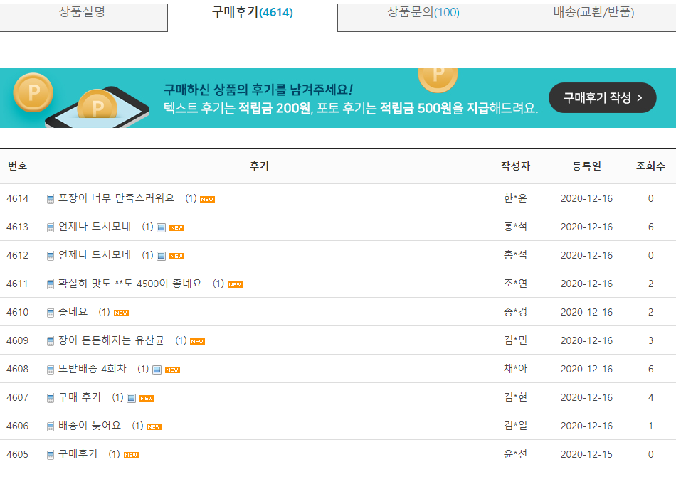 재구매율이 높아 보입니다.