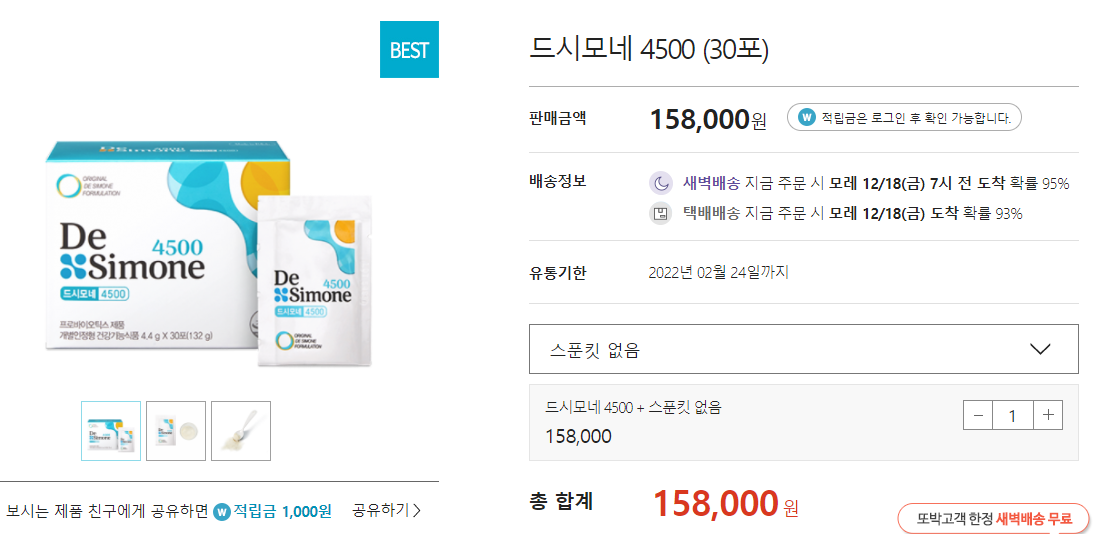 드시모네 유산균의 가격은 제법 있는 편 입니다.